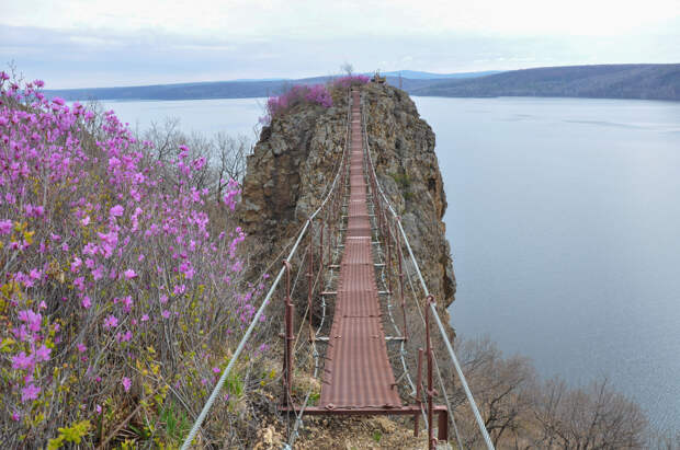 «Шамбала Пинежье» – расположена на берегу Нижне-Бурейского водохранилища. Это очень необычное место, с мостами над многометровыми пропастями, смотровыми площадками на скалах и удивительной природой.